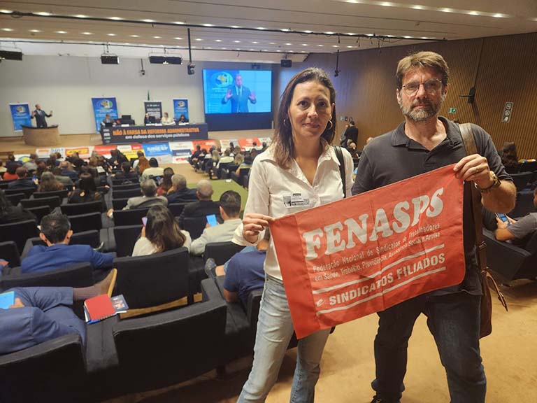FENASPS participa de ato no aeroporto em Brasília e audiência pública sobre a reforma administrativa