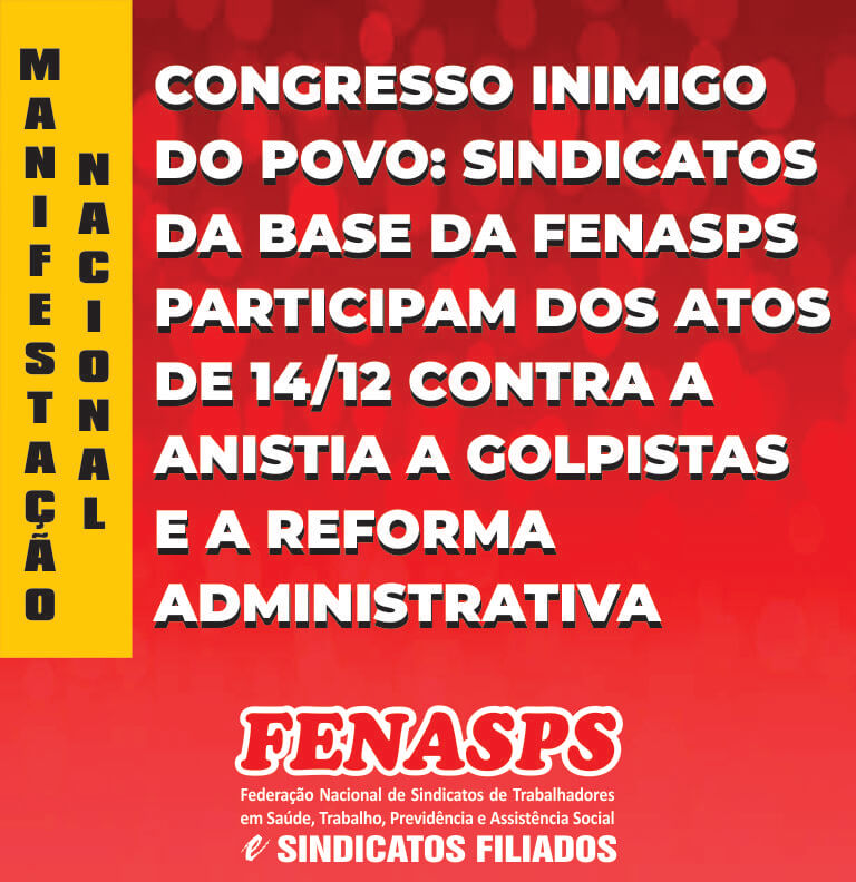 CONGRESSO INIMIGO DO POVO: SINDICATOS DA BASE DA FENASPS PARTICIPAM DOS ATOS DE 14/12 CONTRA A ANISTIA A GOLPISTAS E A REFORMA ADMINISTRATIVA