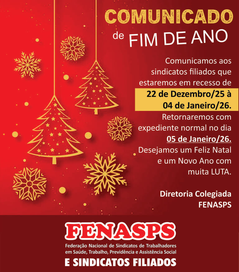 APÓS INTENSO ANO DE LUTA, A FENASPS ESTARÁ EM RECESSO DE FINAL DE ANO – CONFIRA